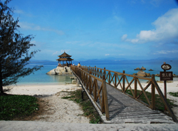 7、蜈支洲的海水很漂亮,如果赤腳游玩要小心沙灘上一些碎珊瑚喔。